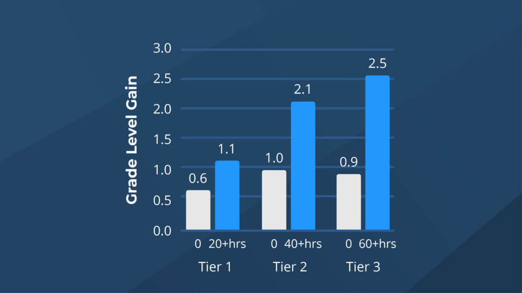 Across all tier groups, students who completed the recommended amount of Reading Plus instruction during the school year achieved significantly larger proficiency gains than students who did not engage in Reading Plus instruction.