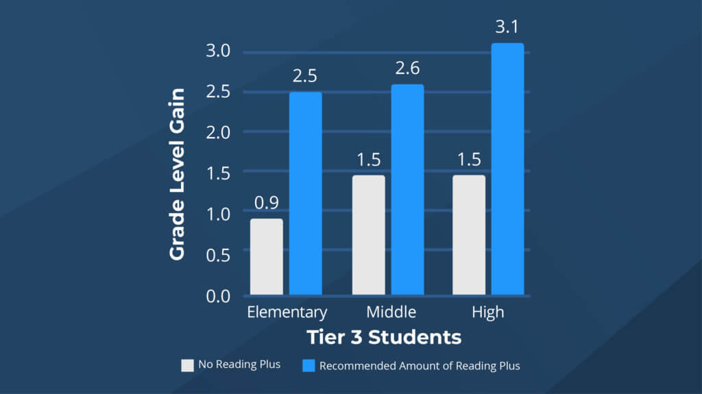 More intensive use of Reading Plus is recommended for students who are reading below grade level and need to catch up with their peers.