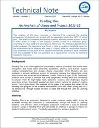 The results showed that Reading Plus had a significant positive effect for students of all ability levels and at all grade levels. This report was also conducted for the 2010-2011 school year with nearly identical results, leading Miami-Dade Public Schools to state that Reading Plus was found to have a consistent beneficial impact on the achievement of the students who used the program.