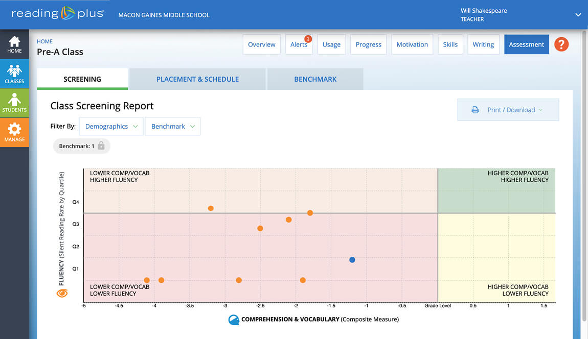 Reading Plus simplifies the instructional planning process with interactive support for every teacher, including resources, from professional development videos to printable resources and lesson tutorials to support the needs of each student, automatic recommendations for small group instruction, and access to rich student data.