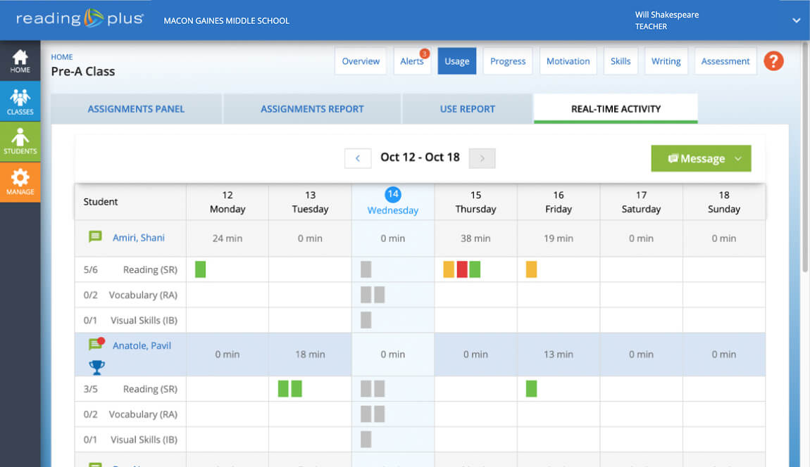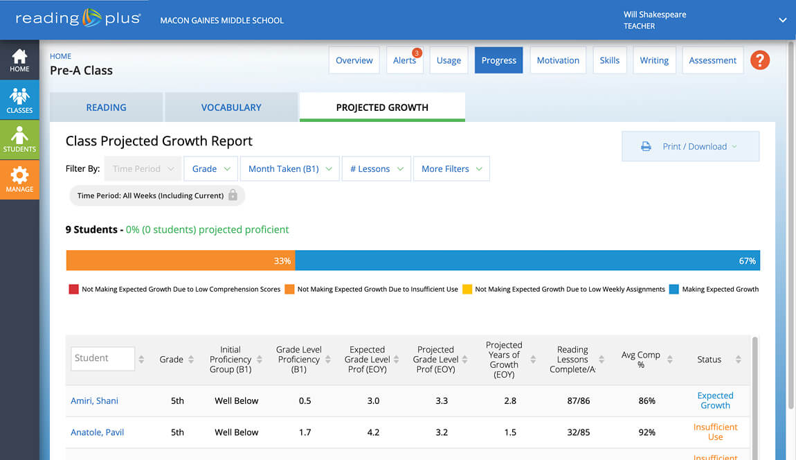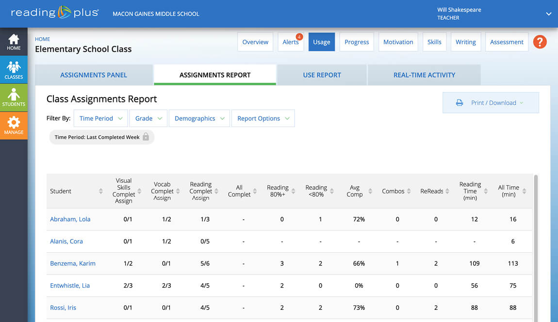 Real-time, actionable data enables teachers to build comprehensive student profiles and assign lessons automatically. A variety of data-driven reports offer teachers a quick glance into student and class progress, giving teachers valuable insight throughout the year.